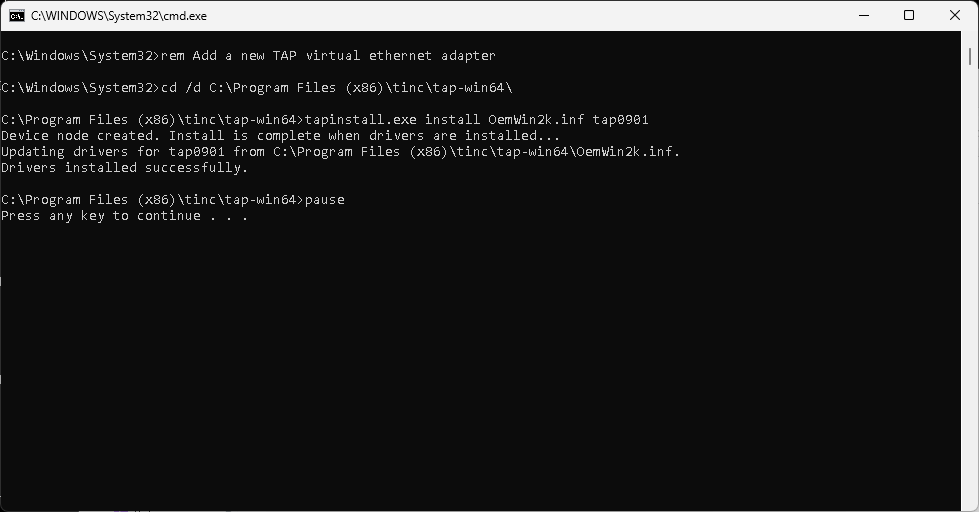 3. Go to the folder you installed Tinc (C:\Program Files (x86)\tinc\tap-win64 (on older/32 bit systems might be tap-win32)